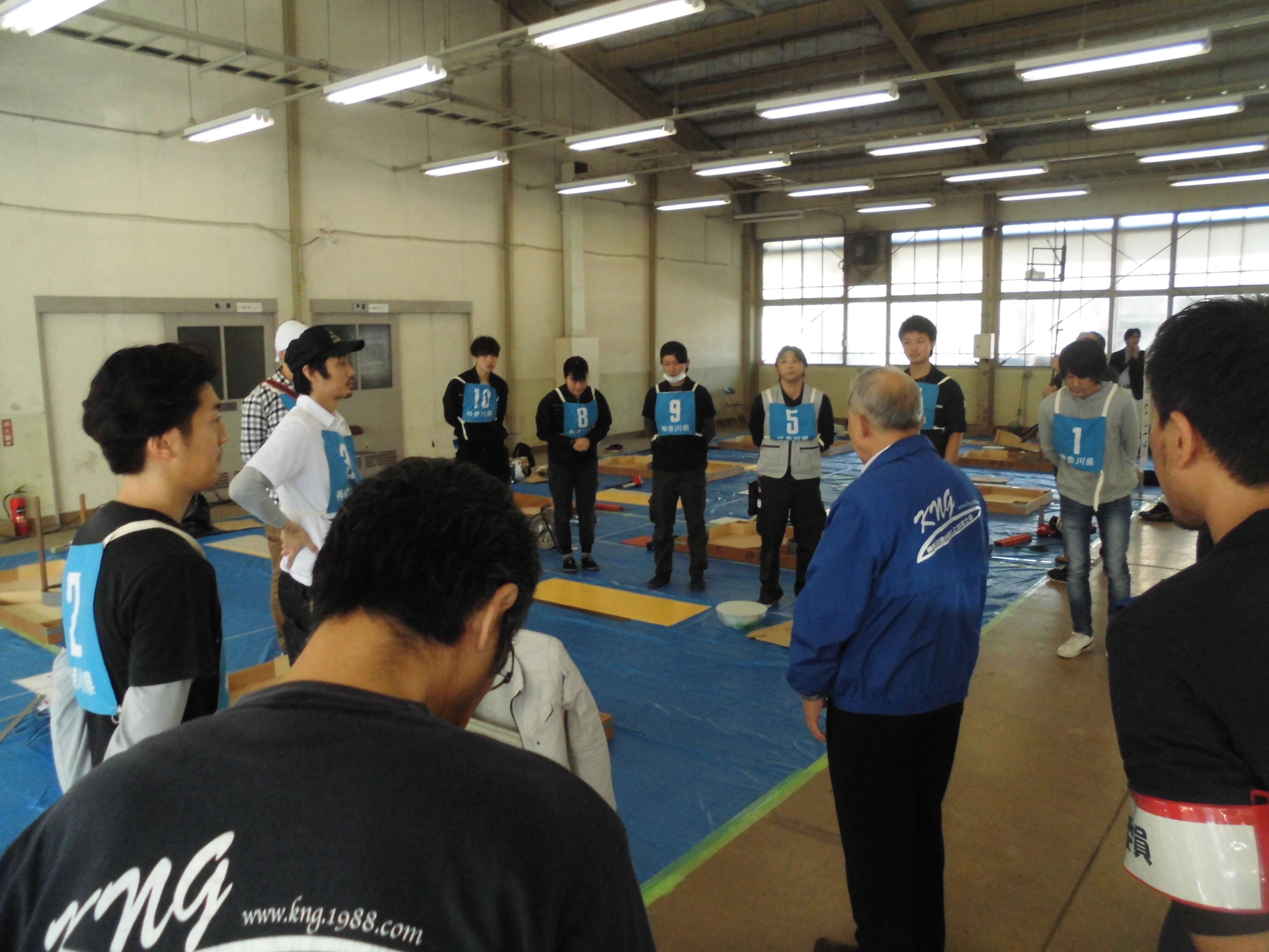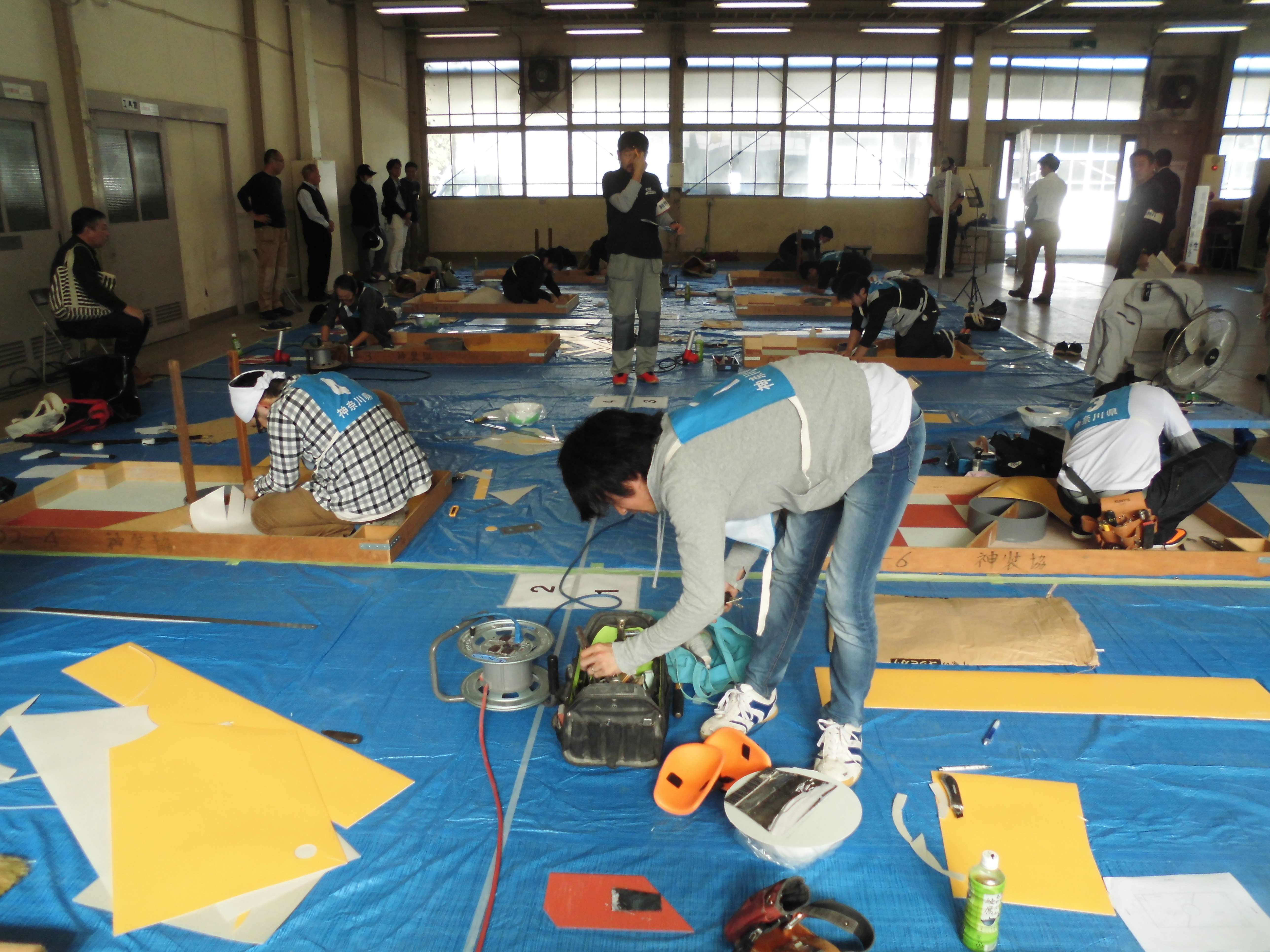 サ~始まりました。床の競技は本職さん、職業訓練校の皆さんも参加する大会なので結構盛り上がりますよ~~