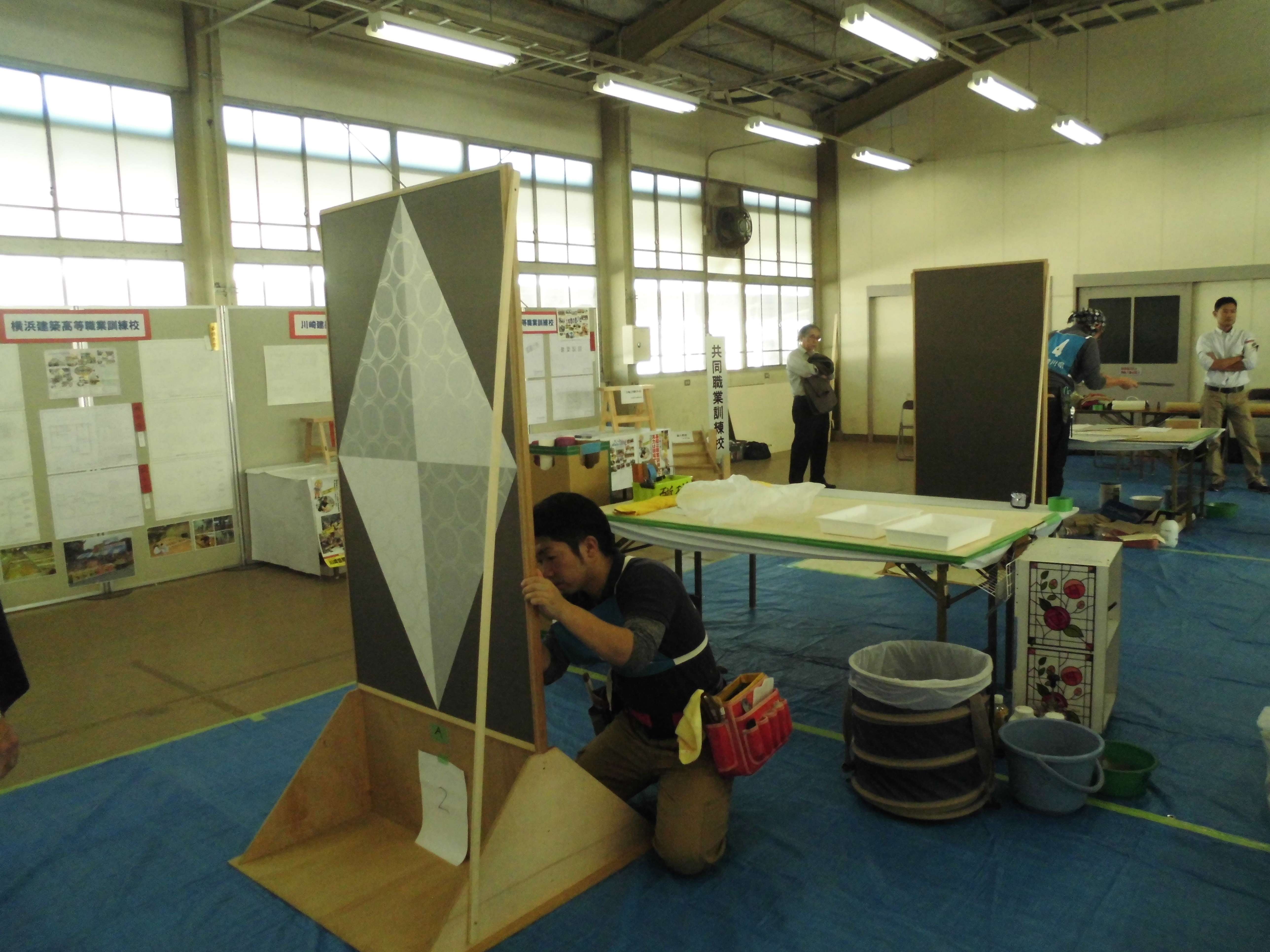 お隣では表具の競技やってます。仲間が選手としてでてますよ~。ガンバ