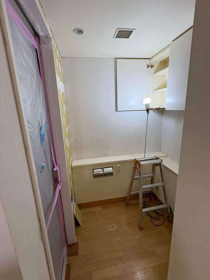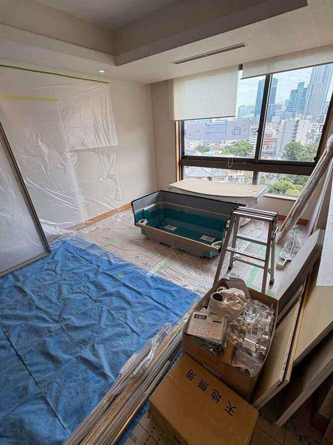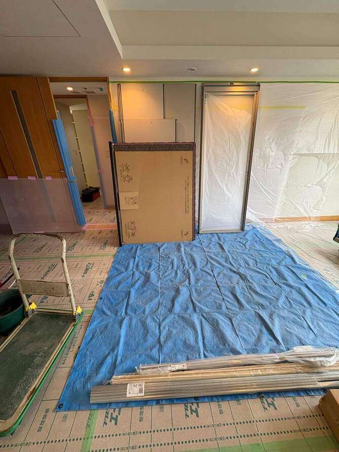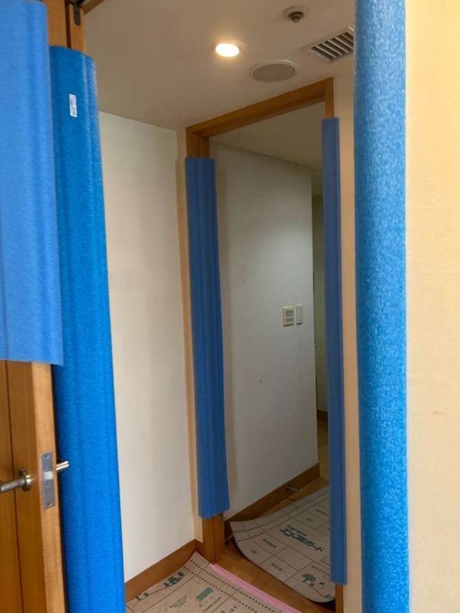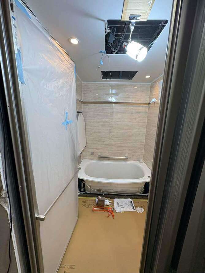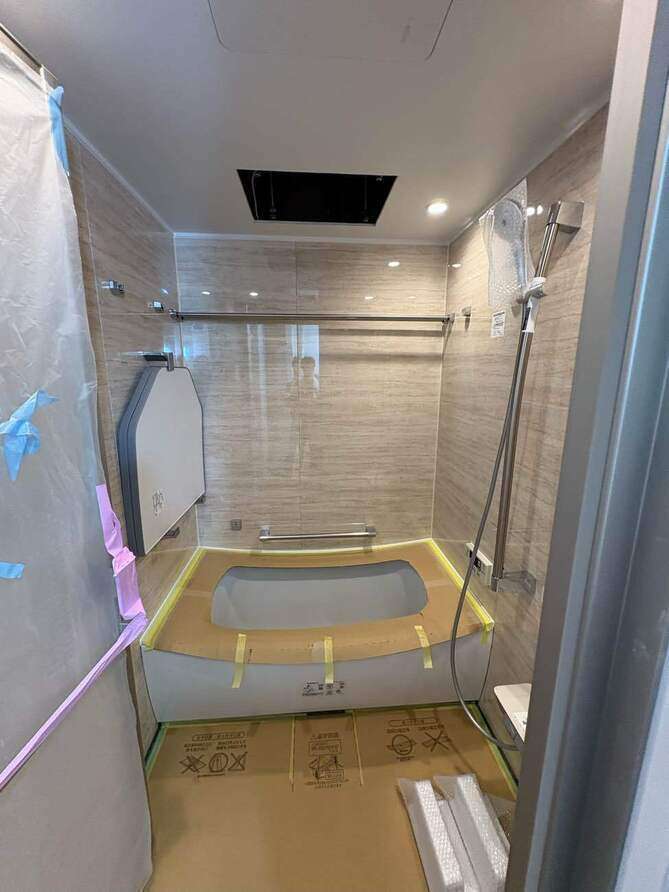 養生してユニットバス搬入です