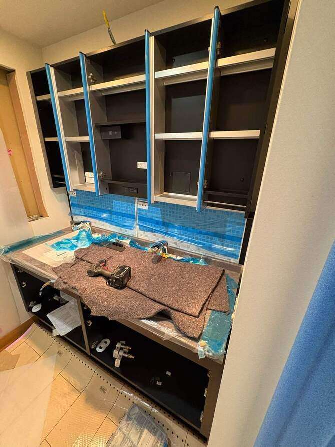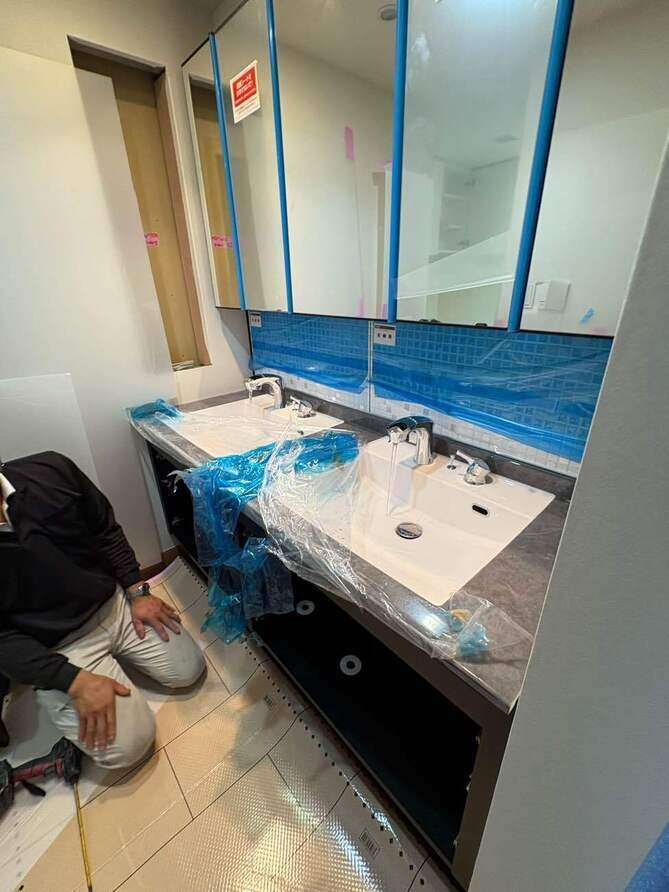 今回はリクシルさんのルミシス洗面化粧台取付です