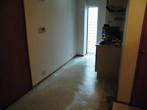 キッチンのクッションフロアー張替、 剥がし終わったところです。 床のりを塗ったところです。...