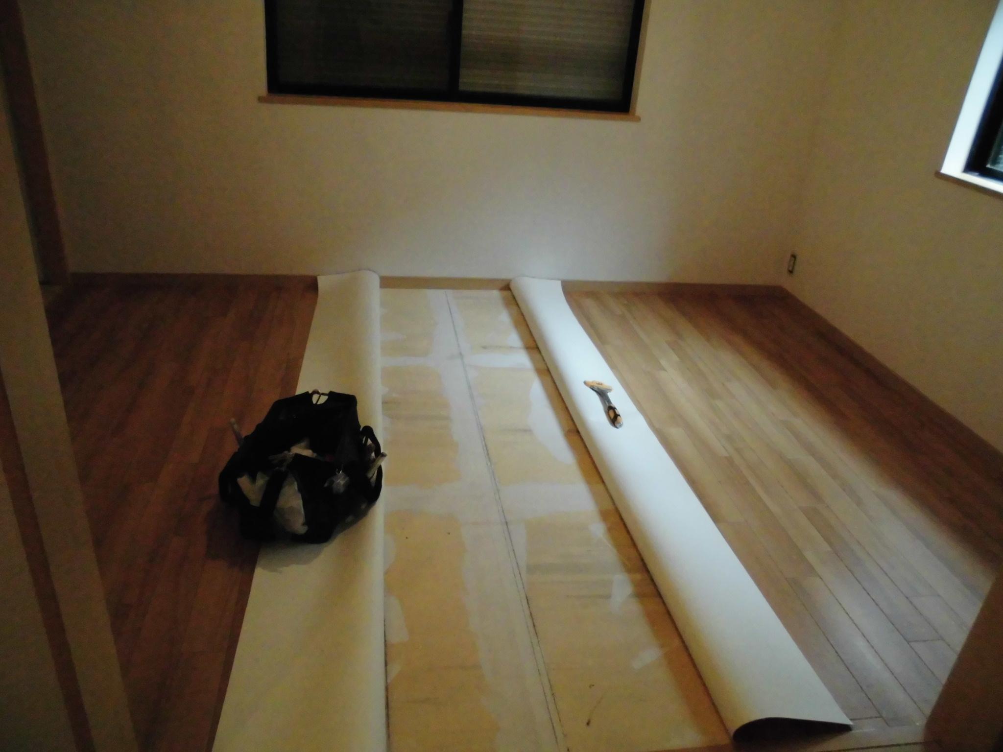 次に、クッションフロアー張って行きます。