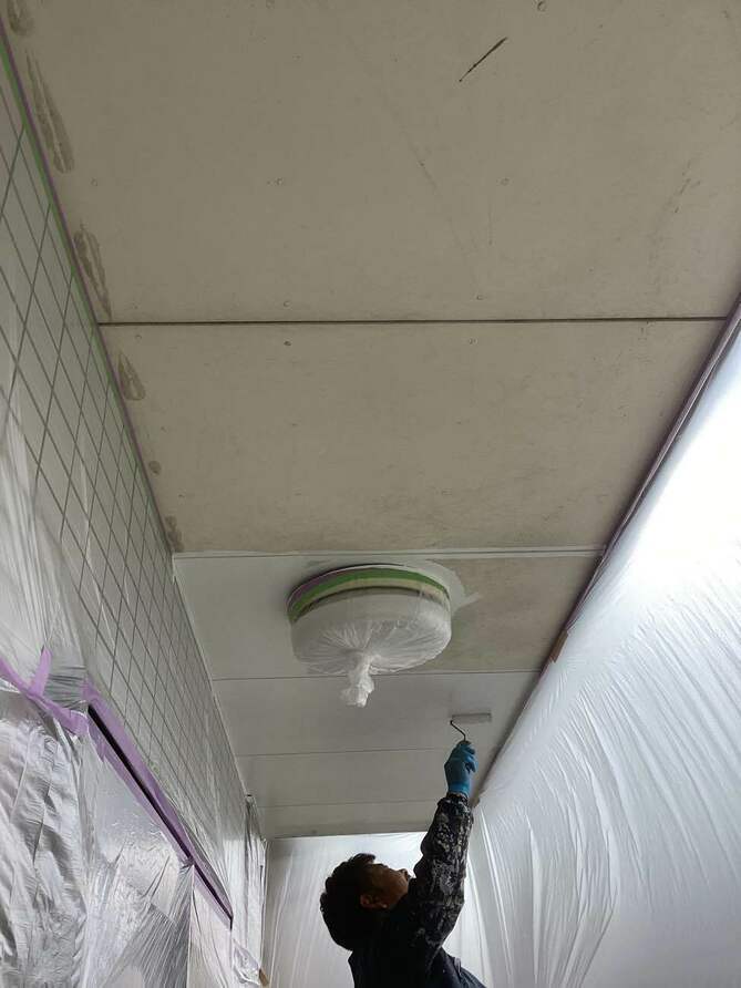 今回は、天井ジプトーン塗装がありました。 換気扇廻りの塗装もありました。 クロスを貼替え...
