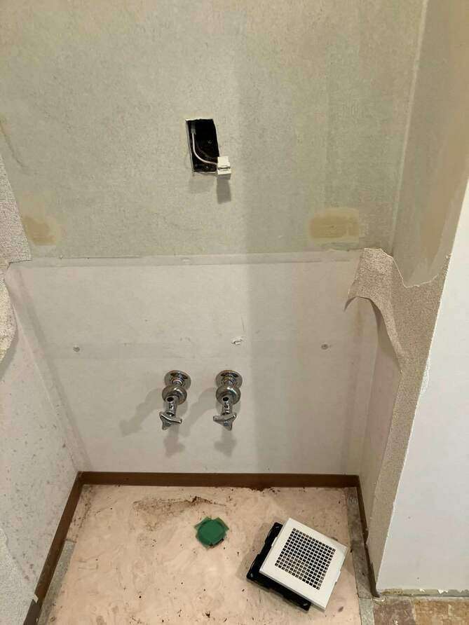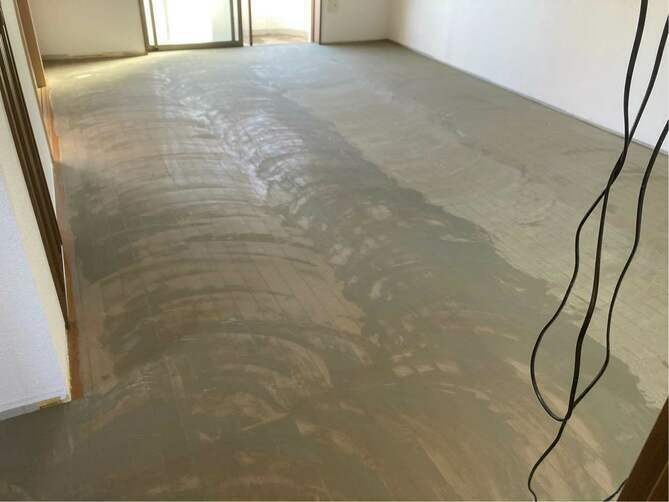 キッチンのクッションフロアー張替、 剥がし終わったところです。 床のりを塗ったところです。...