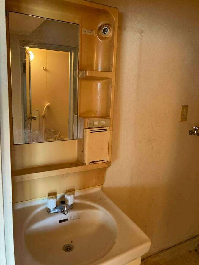 洗面台も経年劣化で変色しています