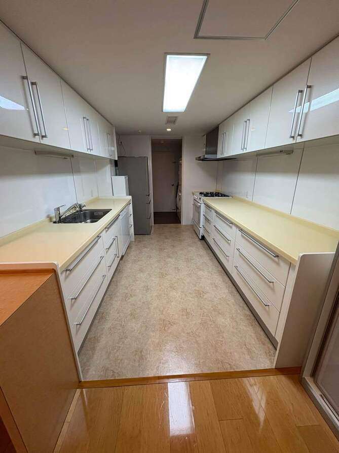 キッチンのクッションフロアー張替、 剥がし終わったところです。 床のりを塗ったところです。...