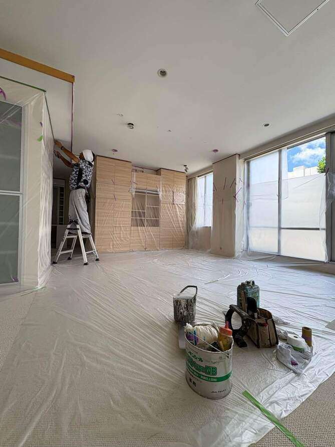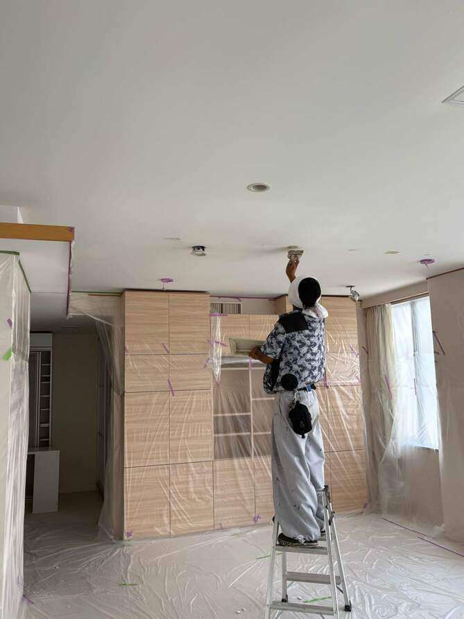 今回は、天井ジプトーン塗装がありました。 換気扇廻りの塗装もありました。 クロスを貼替え...