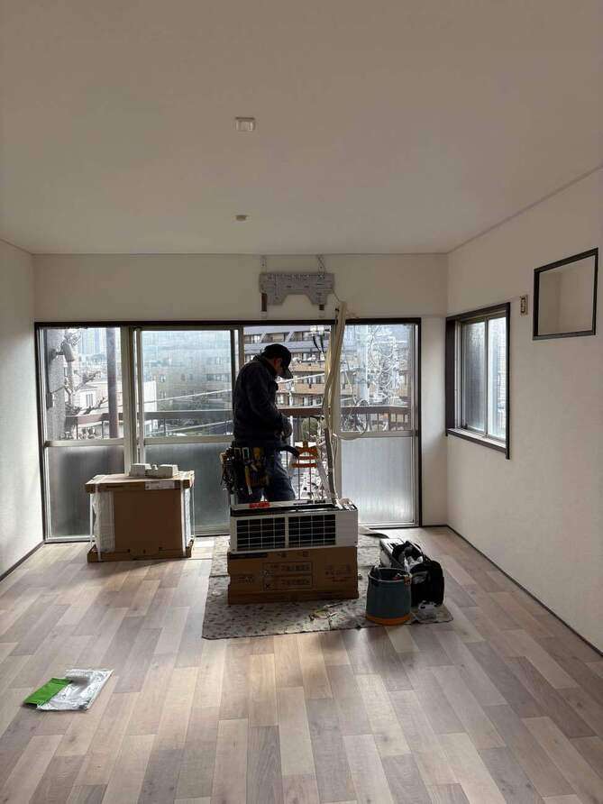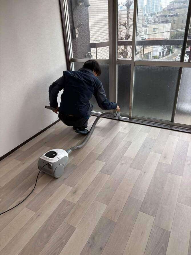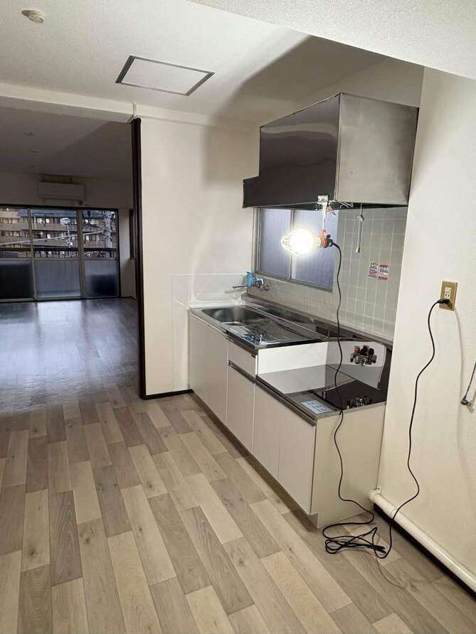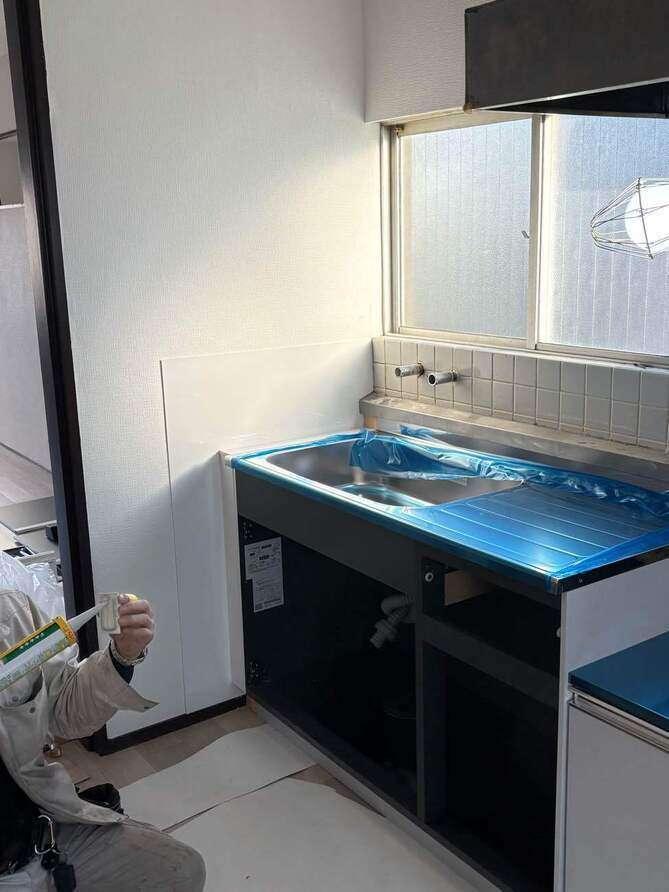 キッチンのクッションフロアー張替、 剥がし終わったところです。 床のりを塗ったところです。...