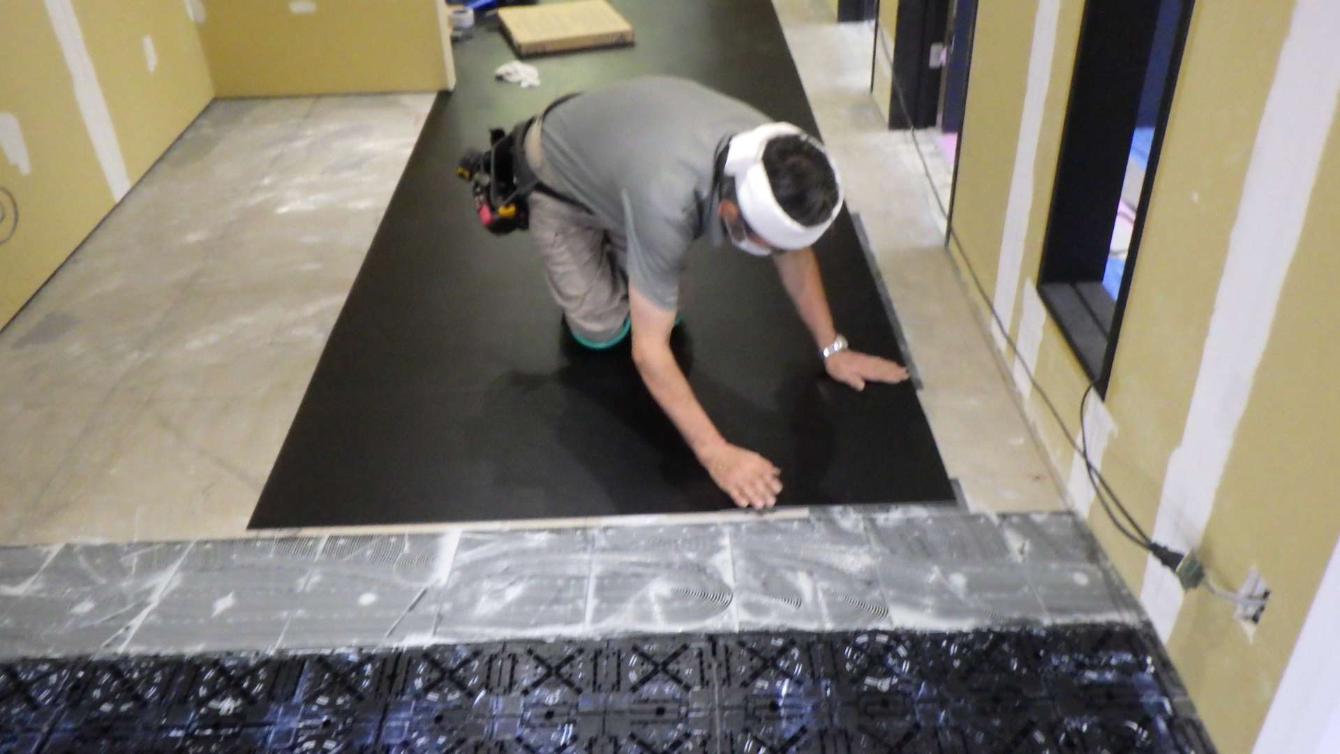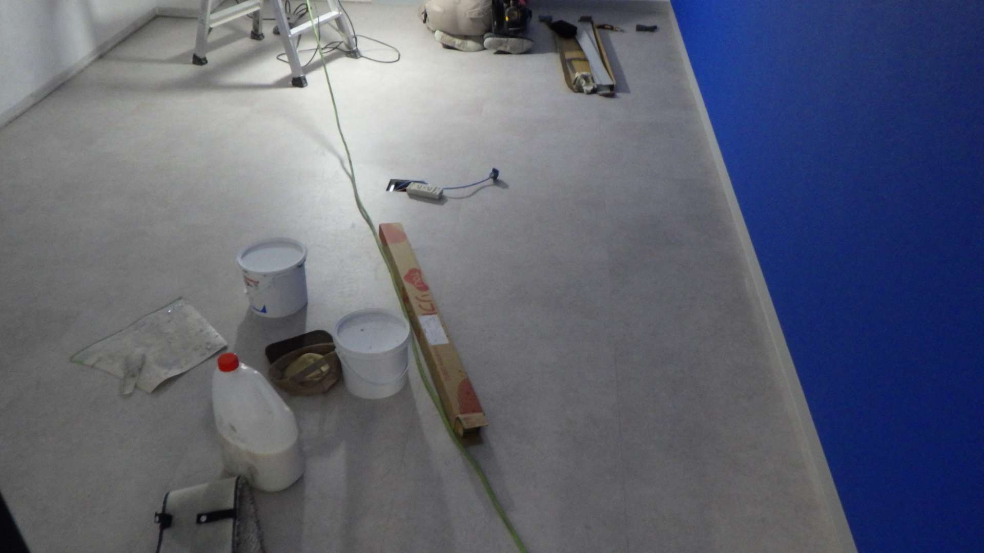 壁クロス張り替え中です。 次にタイルカーペット用のりをぬります。 タイルカーペットを...