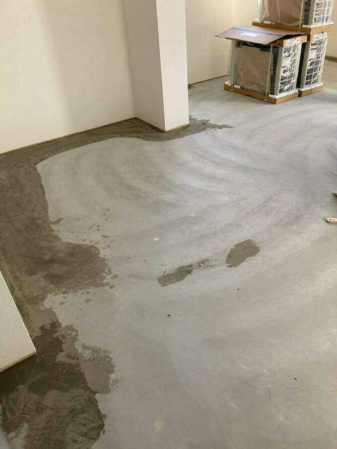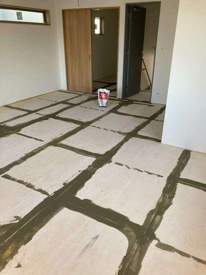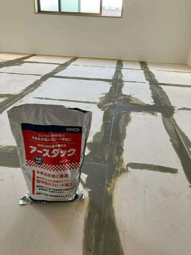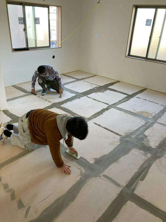 壁クロス張り替え中です。 次にタイルカーペット用のりをぬります。 タイルカーペットを...
