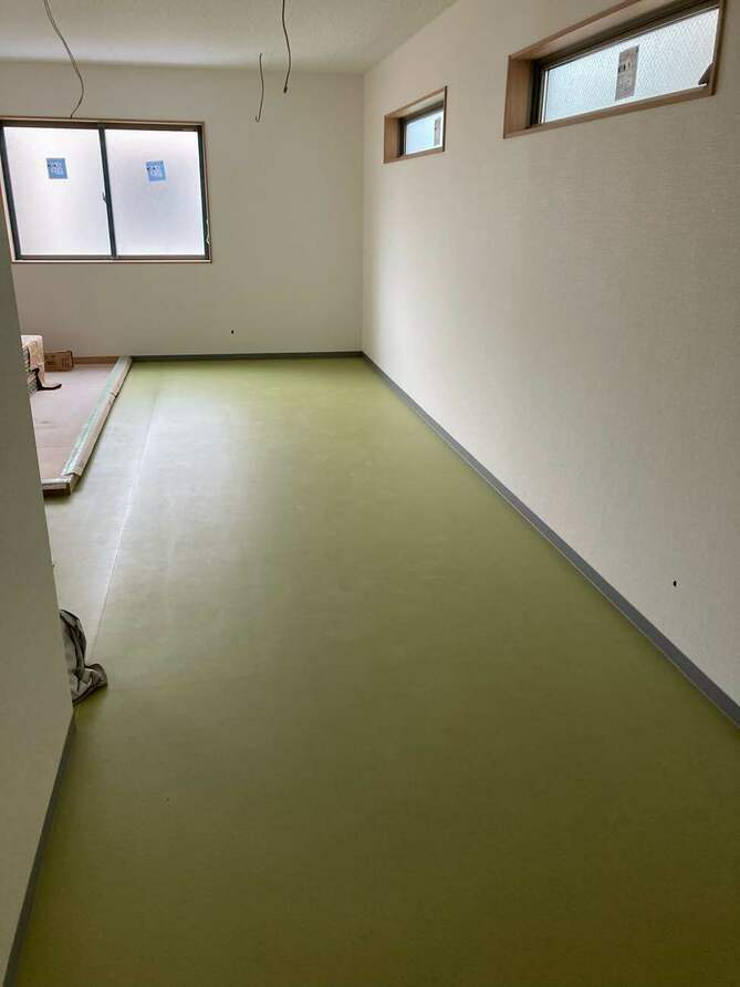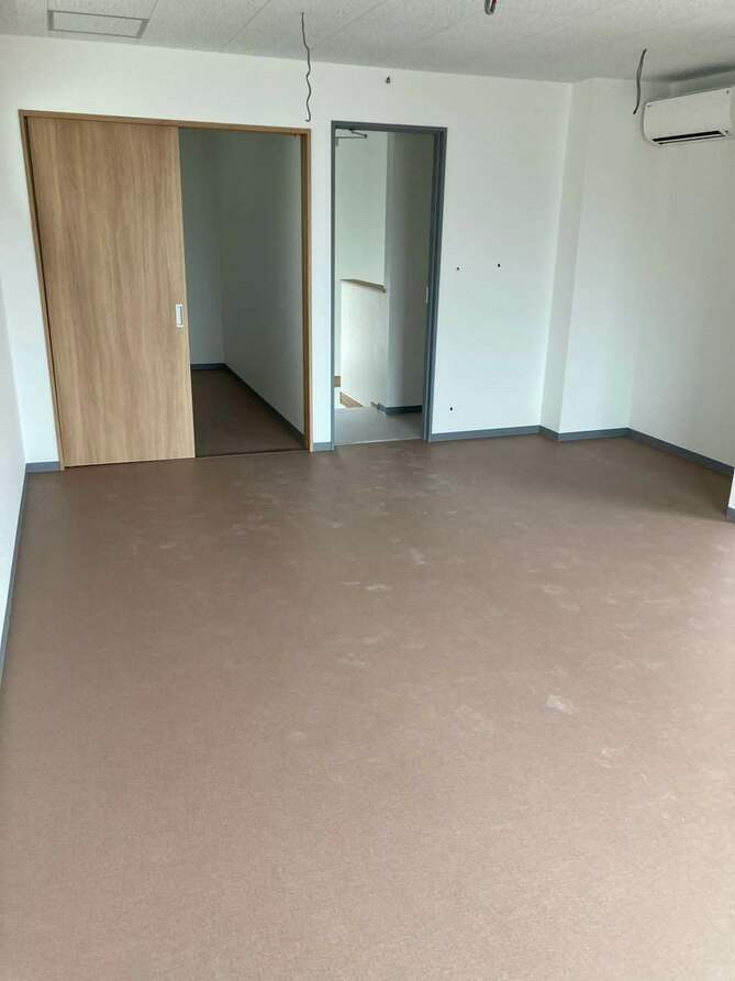 今回は、新規天井・カベ、クロス貼りです。 床は、タイルカーペットを貼りました。