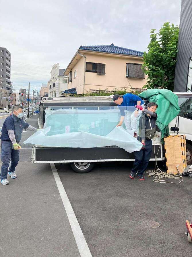ガラス入ってきました、慎重に運びます。