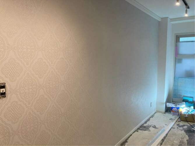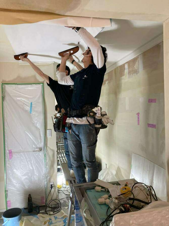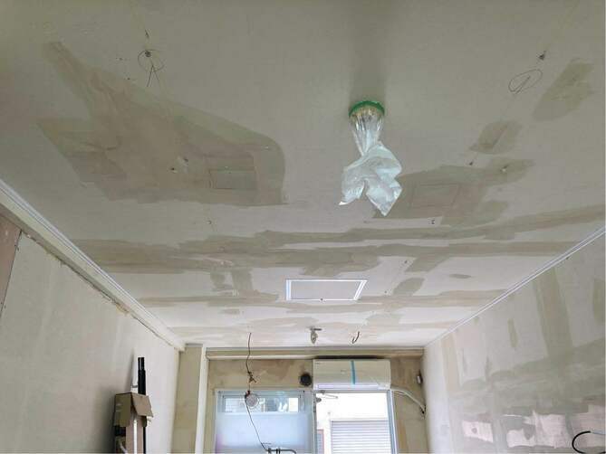 シャッター工事に伴い新規クロス貼りです。 お店閉店後の夜間工事です。 照明を外してもらい...