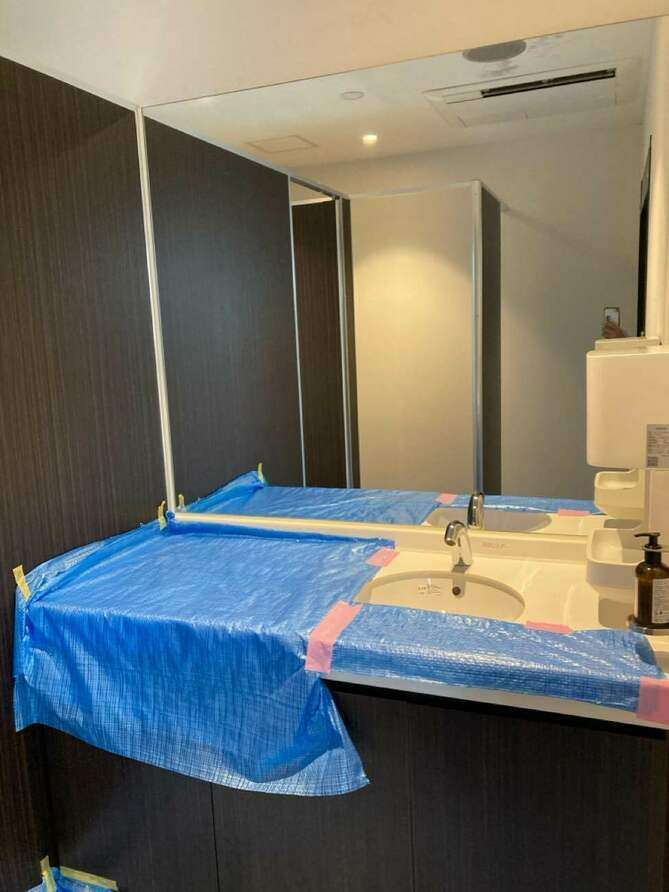 シャッター工事に伴い新規クロス貼りです。 お店閉店後の夜間工事です。 照明を外してもらい...