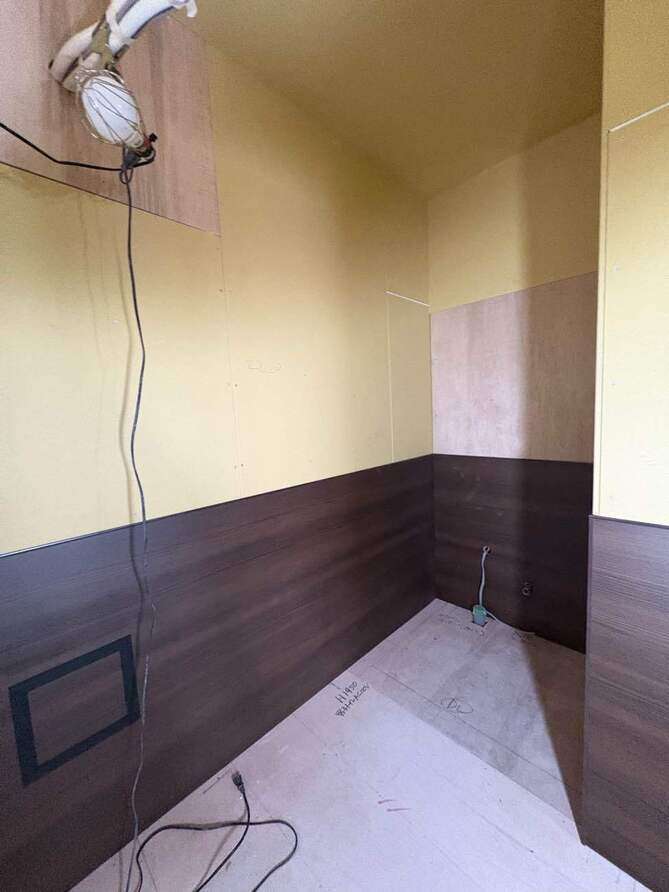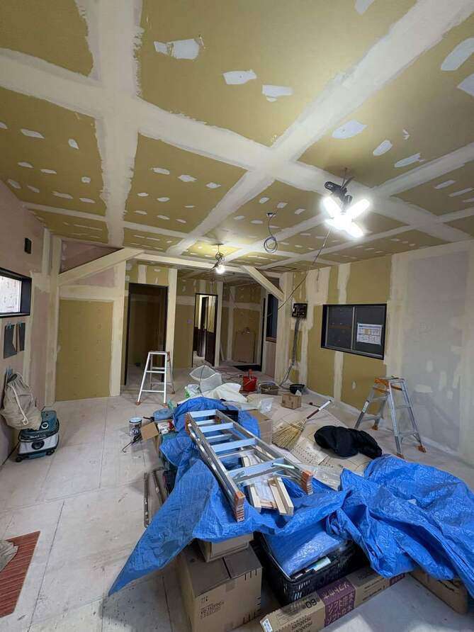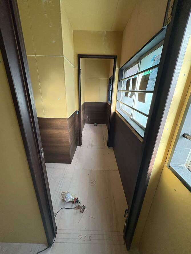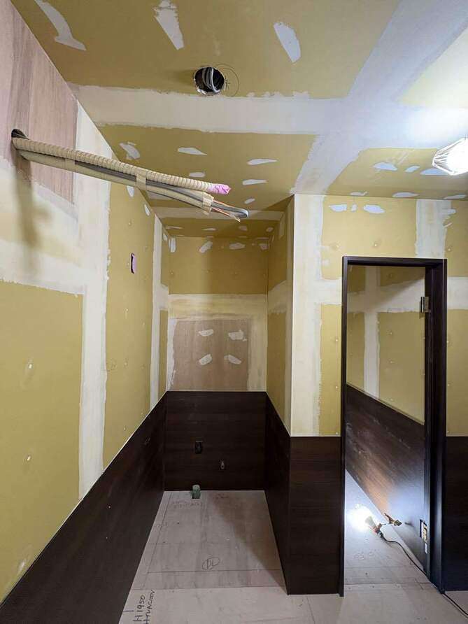 シャッター工事に伴い新規クロス貼りです。 お店閉店後の夜間工事です。 照明を外してもらい...