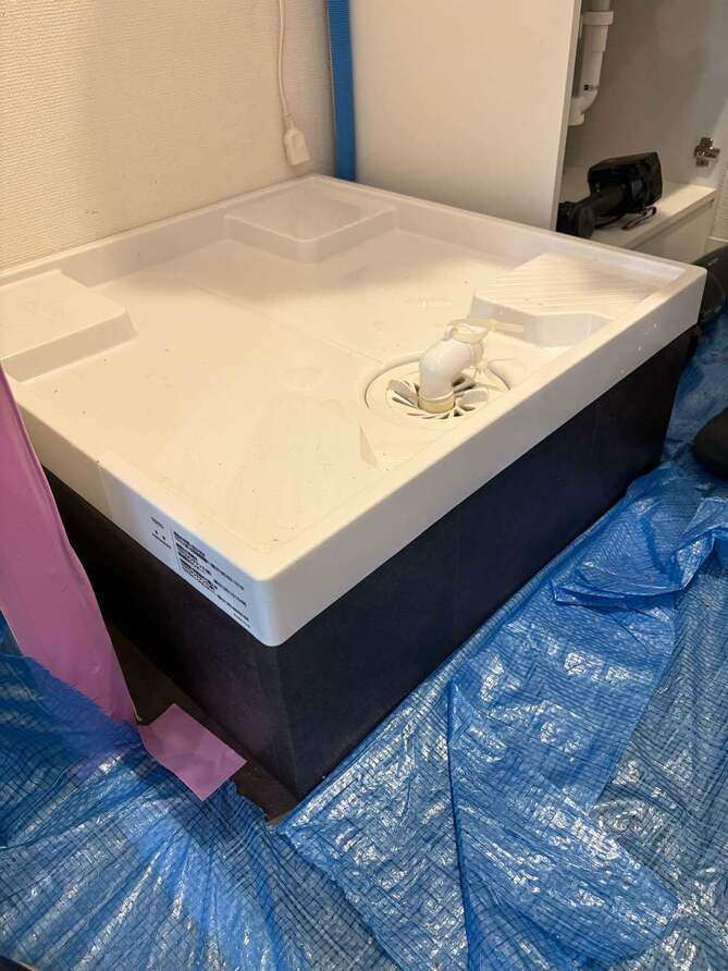 下台、洗濯パン取り付けます