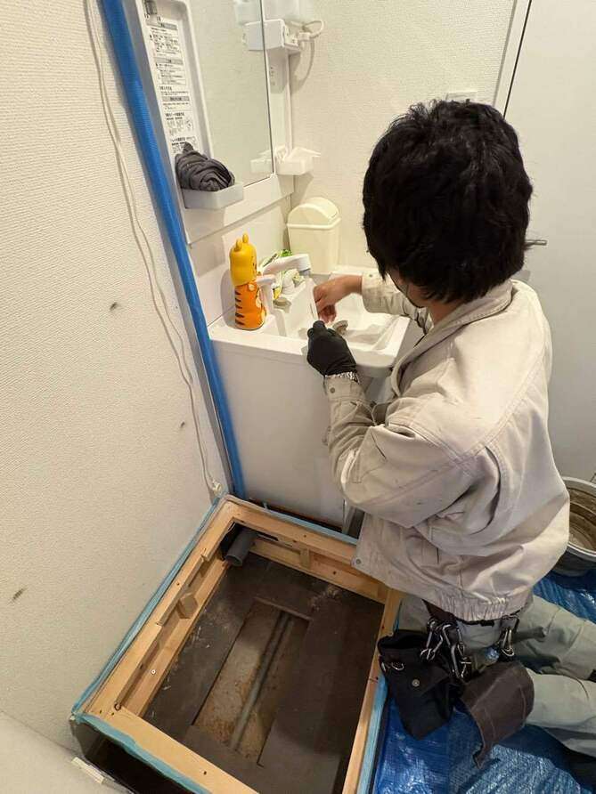 洗面台のカバー元に戻していきます