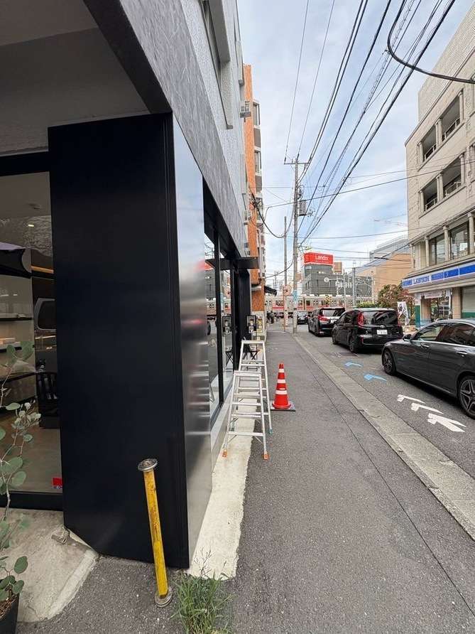 シャッター工事に伴い新規クロス貼りです。 お店閉店後の夜間工事です。 照明を外してもらい...