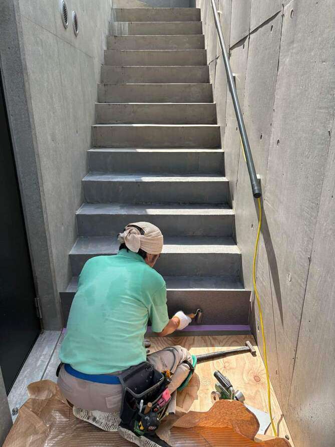 階段張り終わりました、次回に続きます