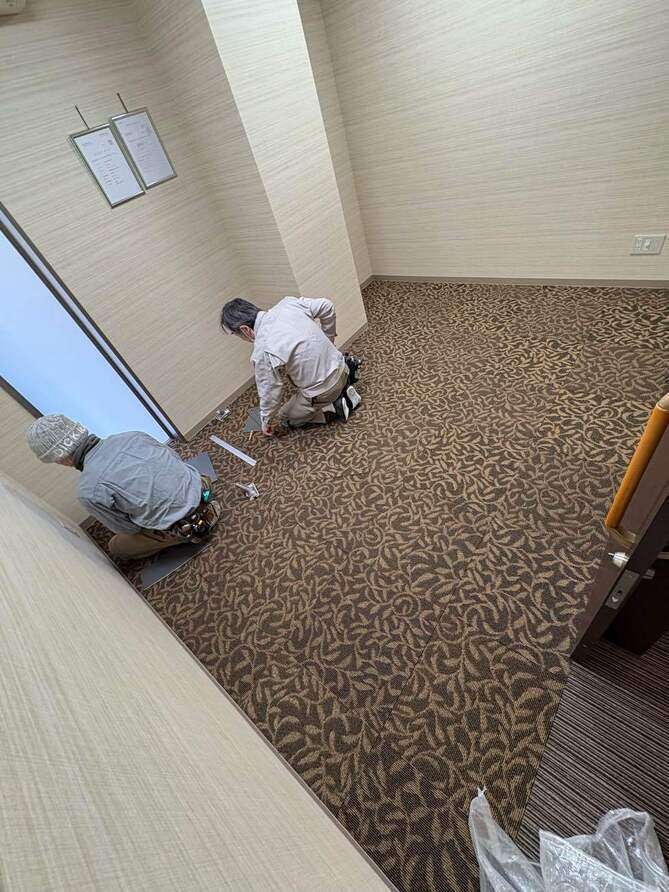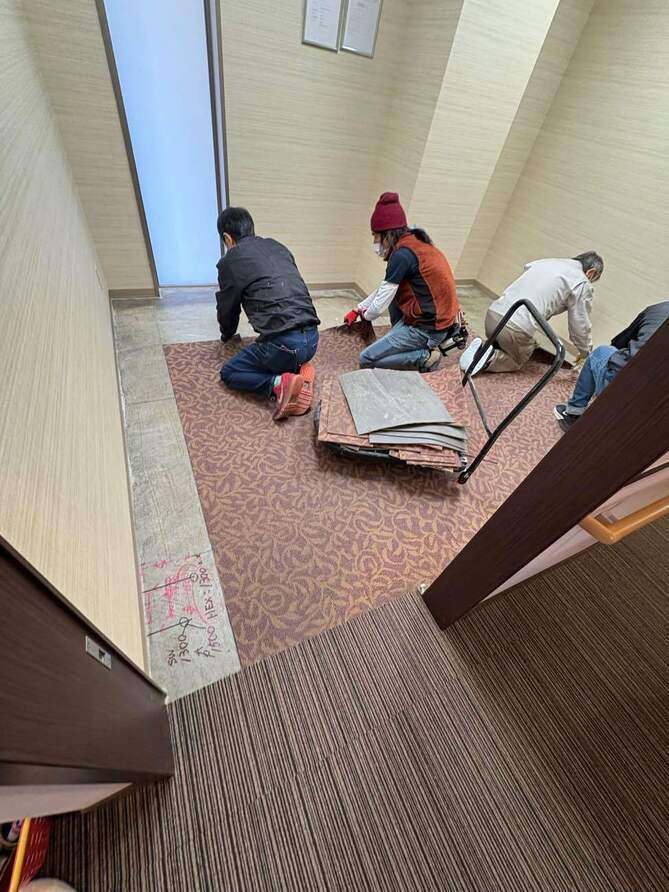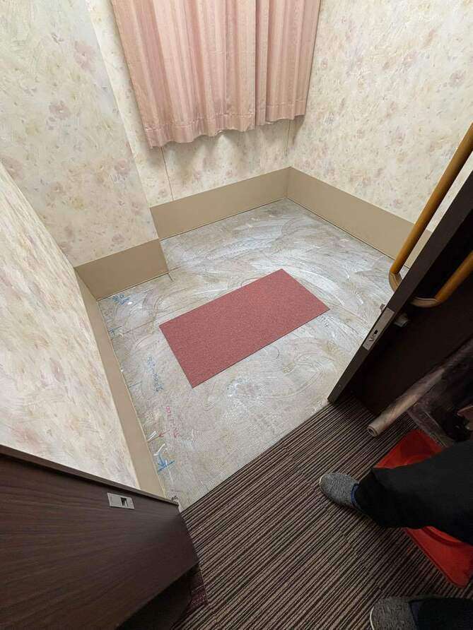 次はこちらの部屋のタイルカーペット剝がしていきます